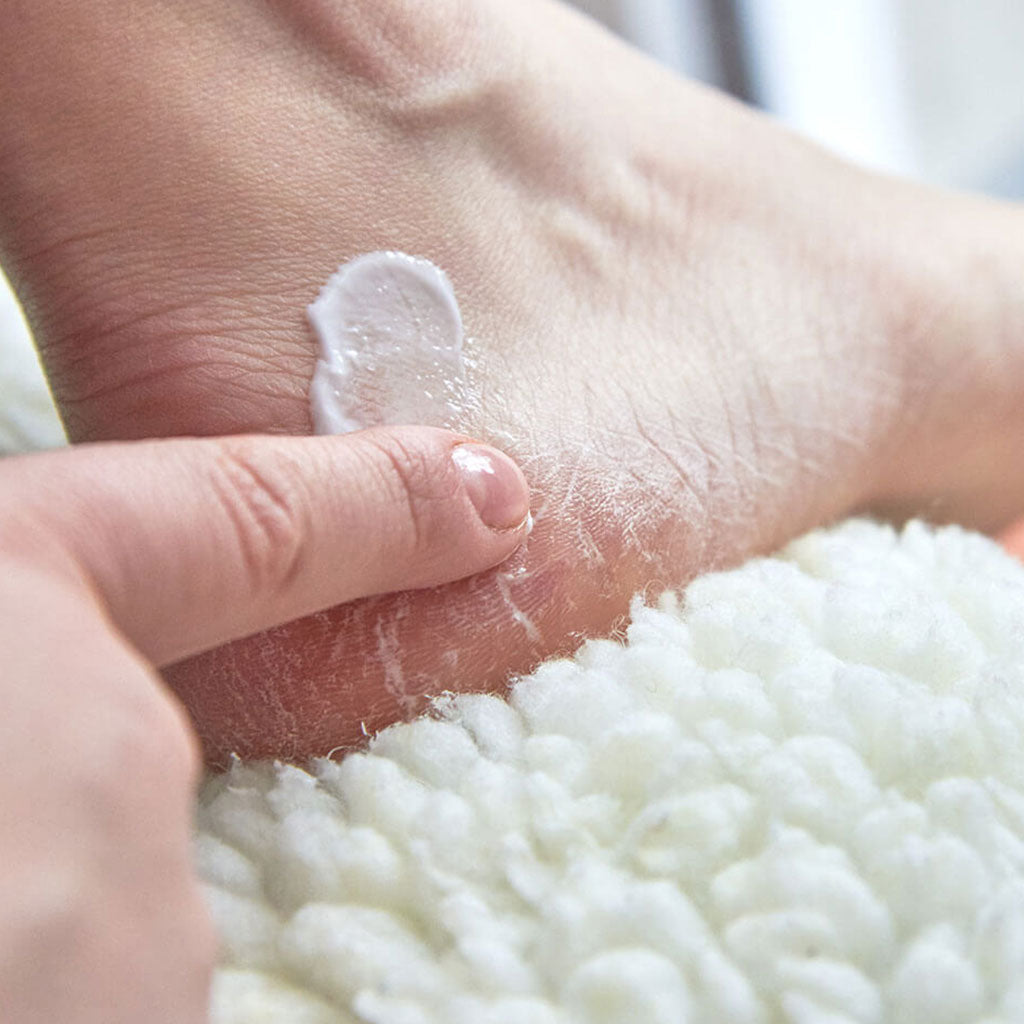 - Wash and dry feet. Apply Dermatonics Heel Balm With Hydrating Manuka Honey twice a day to rough, hard, dry skin on your feet to minimize risk of cracking