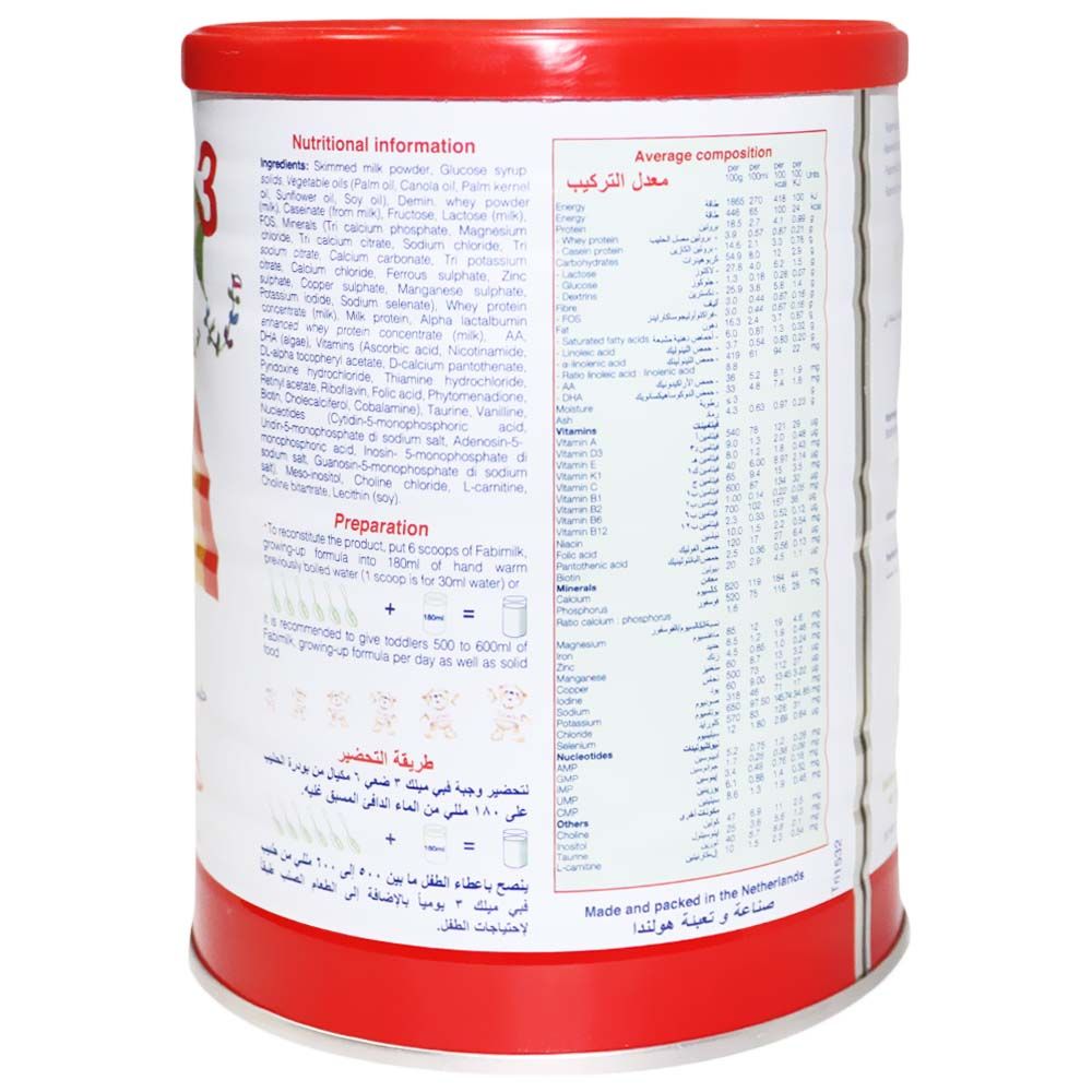 Fabimilk Growing Up Milk is preferable to cow�s milk because cow�s milk is too rich in saturated fat, and lacks iron and essential fatty acids and vitamins. Iron deficiency is still considered to be the main cause of malnutrition in children aged 1-3 years around the world. A toddler�s variable diet tends to be inadequate in iron, zinc, calcium and vitamins B, D, A, and C all of which are provided in Fabimilk 3.