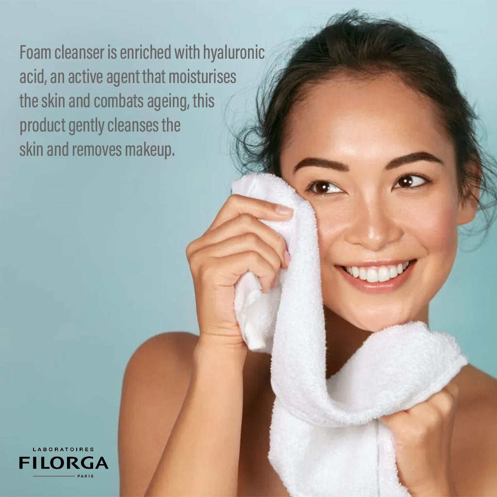 Foam cleanser is enriched with hyaluronic acid, an active agent that moisturises the skin and combats ageing, this product gently cleanses the skin and removes makeup. The skin is left perfectly clean, ready for your anti-ageing cream.
