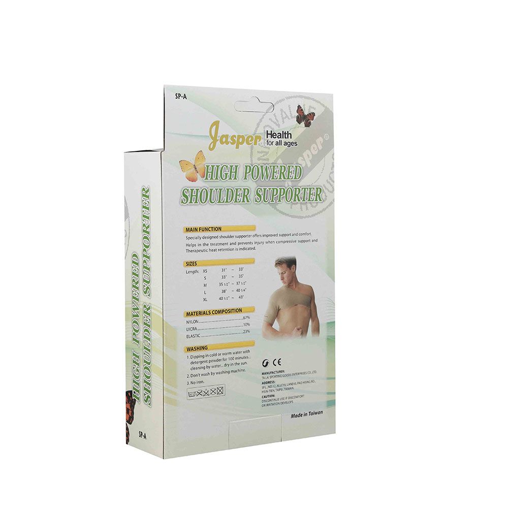 Jasper High Powered Shoulder Supporter is ideal for orthopedic conditions when only one shoulder if affected. It provides stabilization and mobility. Helps prevent of re-injury of overused joints of shoulder. For support following cast removal, varicose veins, varicose ulcer, and general edema.
