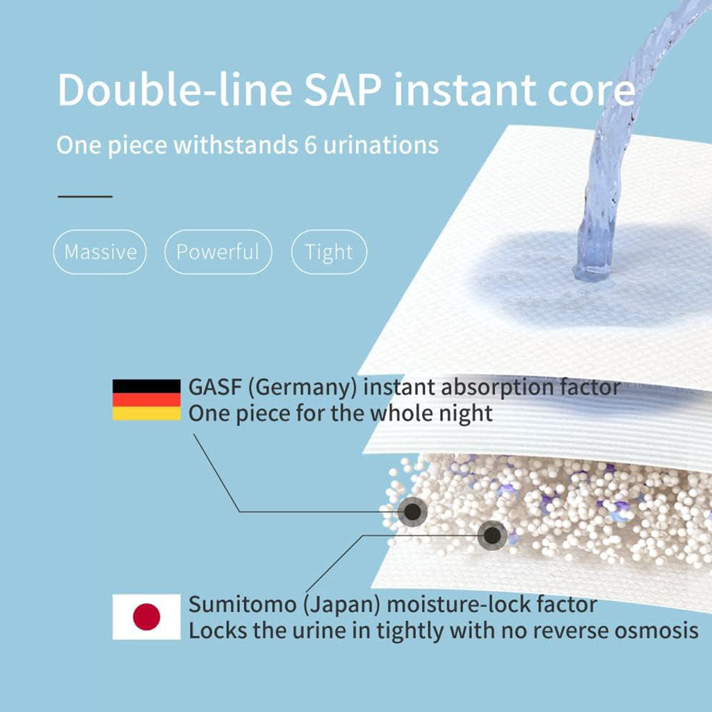 - With a double-absorbent combination of German and Japanese absorbent polymers