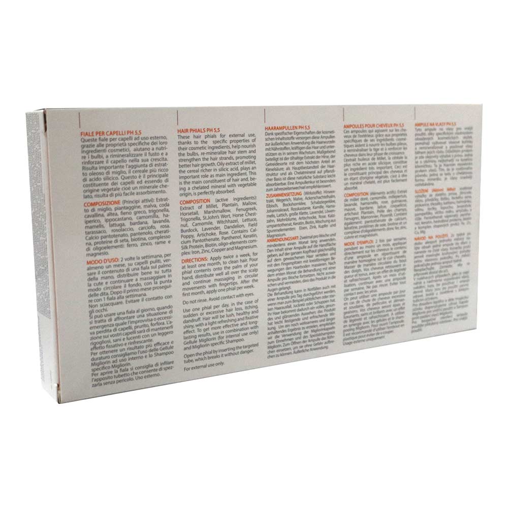 Migliorin Hair Phials with pH 5.5, help to prevent hair loss and act as a treatment to strengthen hair. They help to oxygenate and promote capillary circulation to the root whilst strengthening the hair. Golden Millet extract is easily absorbed and rich in silicon which is a very important mineral for elasticity, tone and smoothness of the hair. A healthy scalp keeps roots efficient, ensuring the growth of strong, beautiful hair.