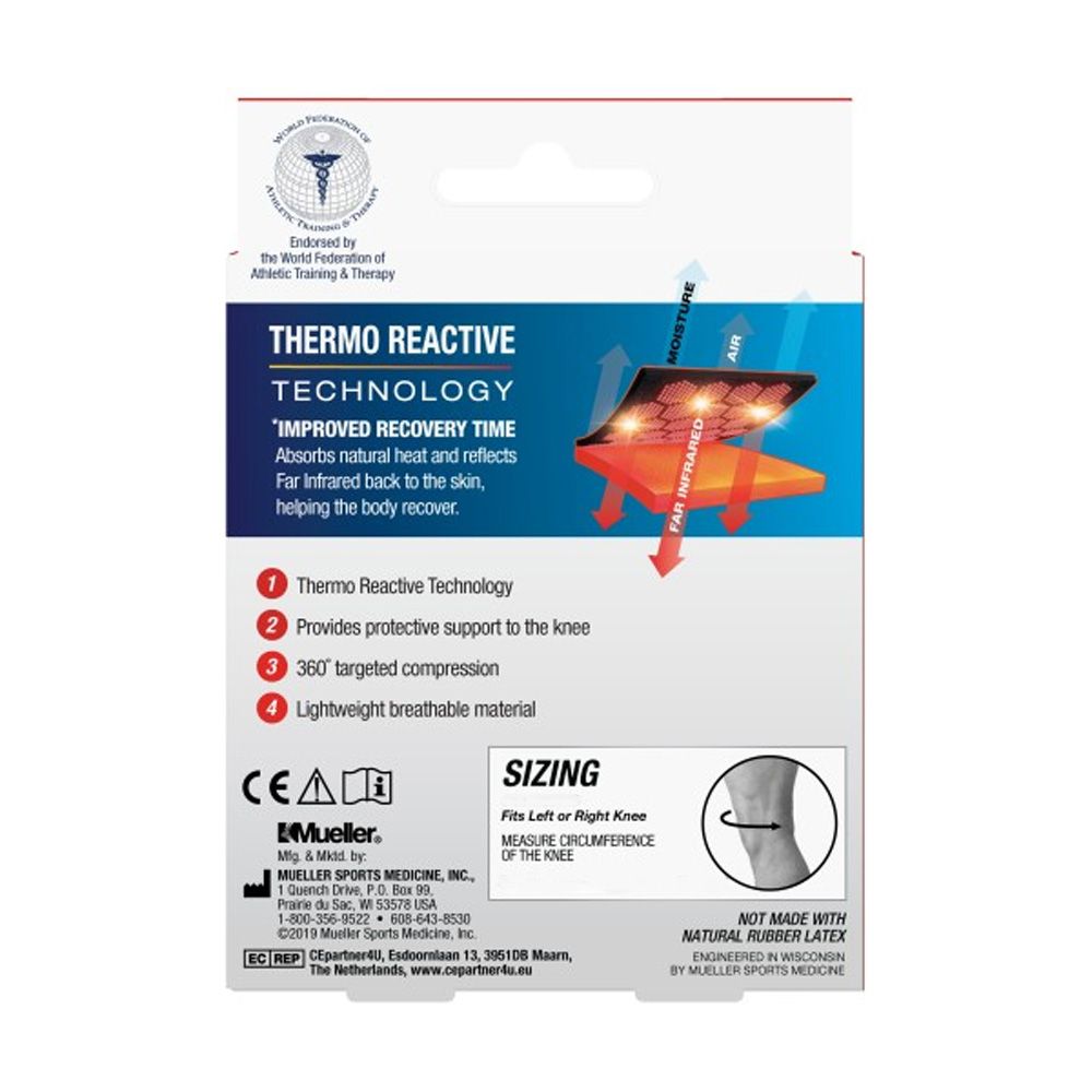 4-Way Stretch Premium Knit Knee Support with Thermo Reactive Technology. The unique knit fabric additive absorbs and reflects your own body heat. That means increased blood flow and improved recovery time for you. Fits right or left knee.
