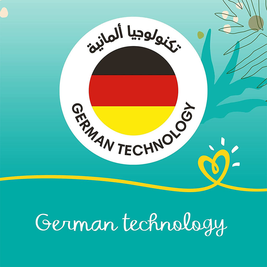 Pampers Baby-Dry Newborn Diapers protect your little one's soft skin, keeping it perfectly dry and well hydrated. With the new addition of aloe vera moisturizing lotion, Pampers Baby-Dry Diapers offer your bundles of joy all-around protection, more than 12 hours of leakage protection, and keep their skin healthy, soft, and dry. Three absorbing channels distribute wetness evenly and lock it better, using the full diaper from front to back for up to 100% leakage protection and 13 hours of dryness. Formulated to protect your baby for more than 12 hours, these ultra-absorbent Pampers diapers are comfortable and safe for long-term wear. Pampers Baby-Dry Diapers also keeps your baby's bottom dry also helps to prevent diaper rash. Made with features you and your baby will love, these Pampers diapers come with a handy wetness indicator that simply goes from yellow to blue, so you always know when it might be time to change. Pampers Baby-Dry Newborn Diapers have unique air channels that keep the air circulating, providing the baby with comfort and breathable dryness all night long. These baby diapers come with newly designed bigger and wider sides for your baby's improved comfort at any time. The newly designed baby diapers allow them to move freely by providing a great fit while staying dry, so they can play and dance without restriction. Their stretchy sides allow them to adapt to your baby's every move, improving playtime and offering unprecedented levels of comfort throughout the night. Designed with German technology, these baby diapers are all your baby needs to be comfortable and totally protected, while preserving his soft healthy skin.