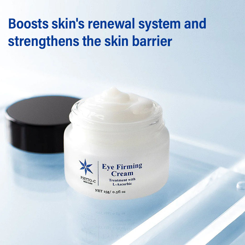 Phyto-C Eye Firming Cream provides extraordinary antioxidant protection, reduces and prevents premature signs of aging around the eye areas. It stimulates collagen production, enhances elasticity and firmness of skin. Phyto-C eye firming cream firms, brightens and targets fine lines and wrinkles around the eye area caused by stress and fatigue thanks to its formula containing Vitamin C. Vitamin C, is an effective antioxidant that protects the skin from factors that contribute to the appearance of signs of aging. It enhances the production of collagen, which is responsible for giving the skin elasticity and hydration. It also works to reduce pigmentation and unify skin color. Hyaluronic acid works to fill skin wrinkles thanks to its ability to retain moisture, as its formation contributes to attracting large amounts of water molecules, which leads to strengthening the structure of the skin layers and increasing its elasticity and hydration. In addition, Green Tea Extract helps remove dark circles and reduce under-eye puffiness. All together, Phyto-C Skin Care presents the latest improvement to the range of topical L-ascorbic acid formulation that has been regularly refined through rigorous scientific research.