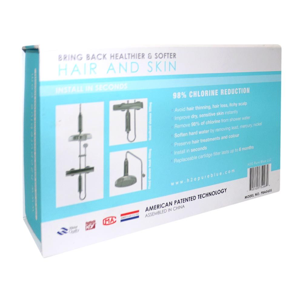 Pure Blue Shower Filter brings back healthier and softer hair and skin with 98% chlorine reduction in the shower. It avoids hair thinning, hair loss and itchy scalp. It can be installed in seconds and cartridge filter lasts for up to 6 months.