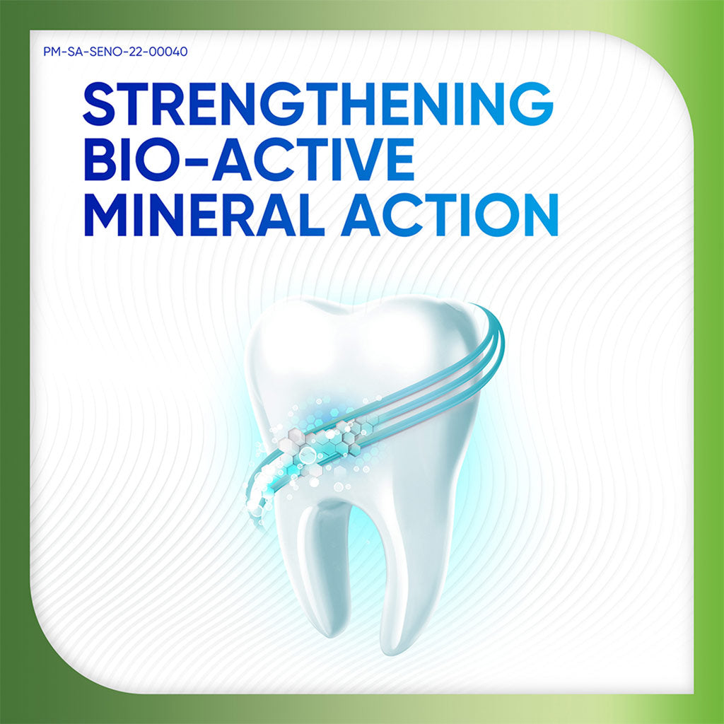 Sensodyne Nourish Healthy White Toothpaste With Natural Mint & Citrus Oil is a daily toothpaste which contains natural mint and citrus oil with a gentle whitening system. Strengthening bio-active minerals are absorbed onto the tooth's surface. With every brush, bio-active minerals strengthen and enrich teeth whilst a revitalising cleansing system removes impurities to leave your mouth feeling healthy. With twice daily brushing, Sensodyne Nourish toothpaste helps with sensitivity. It is infused with natural mint and essential oils for a cleansing and purifying experience. Sensodyne Nourish is a great-tasting vegan friendly toothpaste which contains no animal or animal-derived products and comes in fully recyclable packaging.