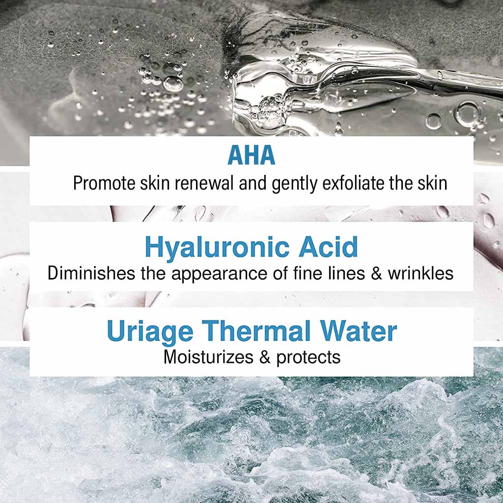 - Formulated with Uriage thermal water, AHA & hyaluronic acid