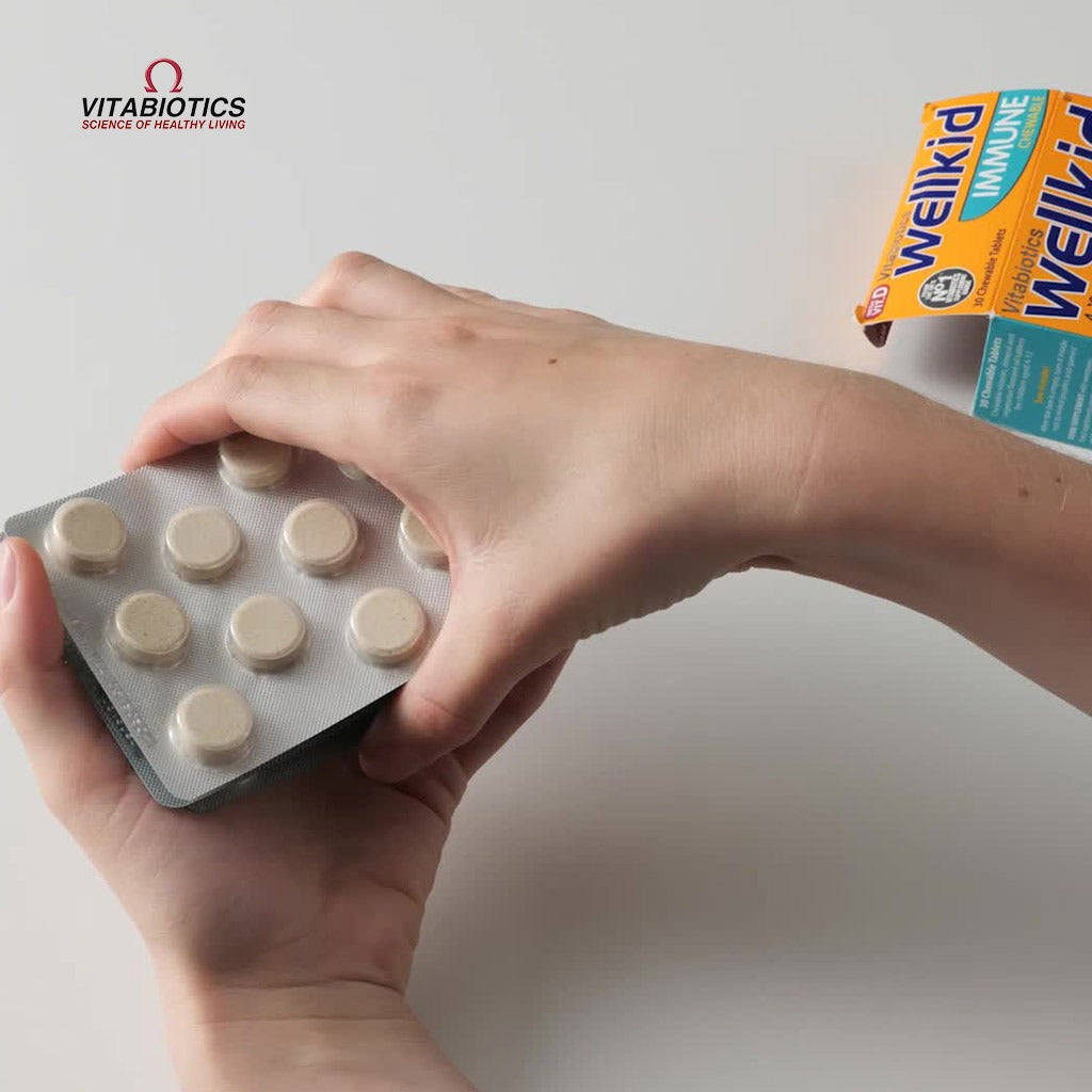 Vitabiotics Wellkid Immune Chewable Tablets With Multivitamins & Minerals have been produced with children's specific needs in mind to provide a comprehensive range of 24 nutrients to help safeguard your child's nutritional intake. They come in a great tasting, orange & lemon flavour. Wellkid Immune Chewable is formulated with iodine which contributes to normal growth and immune function in children, plus vitamin D. Vitamin D is needed for normal growth and development of bones in children. It also contains supporting botanical ingredients including citrus bioflavonoids, natural carotenoids and vegetarian flaxseed oil. The vitamin D in Wellkid Immune Chewable is included in the form vitamin D3 (cholecalciferol) that is naturally produced by the skin when exposed to direct sunlight. Calcium is an essential mineral, also needed for normal growth and development of bone in children. However, it has not been included in the Wellkid Immune Chewable formula, as it is not possible to include the right amount in one tablet. For mothers particularly concerned about the normal bone health of their children we recommend Wellkid Calcium Liquid, which can be taken alongside Wellkid Immune Chewable and contains calcium and vitamin D. Children usually grow out of fussy eating and in the meantime nutritional supplements such as Wellkid Immune Chewable tablets can help safeguard a child's nutritional intake as part of a balanced diet.